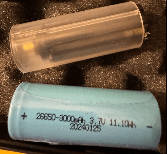 The foam-lined somewhat-hard-plastic case is a nice detail, great for cases where you want to carry it all together without the need for immediate access. Either tear the wrapper off the 26650 battery and insert it, or put three AAA cells of your choice (I like Lithium for long life, like the Energizer Ultimate Lithium that I’ve used several packs of) and insert it. .